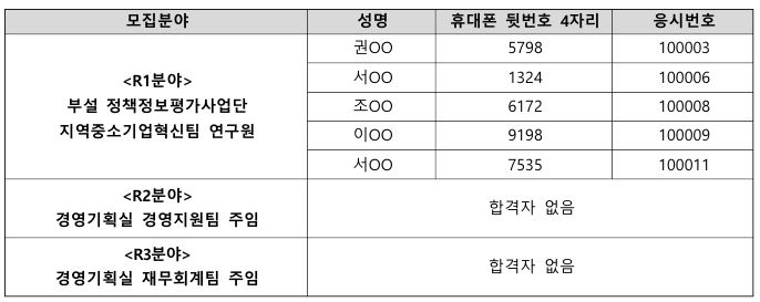 중소벤처기업연구원 채용공고 제2026-02호 관련, 서류전형 합격자를 아래와 같이 발표합니다. 1. 서류전형 합격자